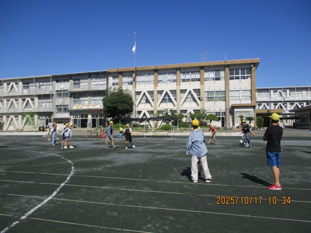 体育の授業で、5年生はティーボールをやっています。ティーボールは野球のようなルールで、攻守交替しながらみんな頑張っていました。たくさんホームランを打って楽しみたいですね。