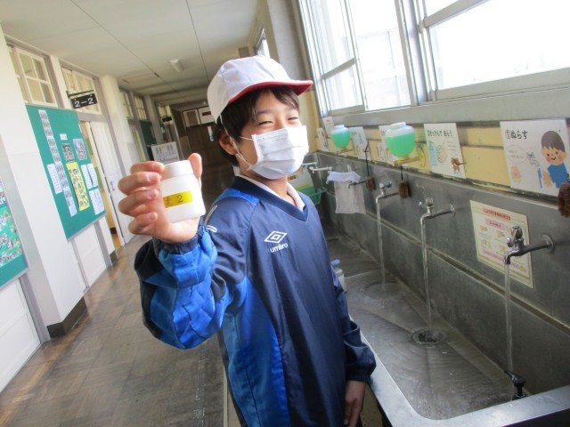 大放課や昼放課には、委員会の活動があります。水質検査をしている子と
