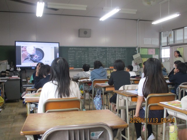 この写真は、6年生が調理実習に向けて、ベーコンポテトのつくり方の動画を見ているところです。集中して動画を見ている子がたくさんいます。みんなで協力して、おいしいベーコンポテトを作れるといいですね。