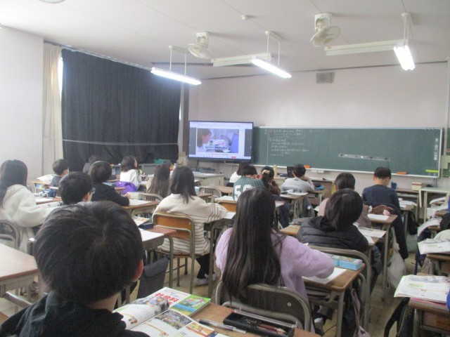 4時間目は英語の授業でした。英会話で伝えたいことを話したり、単語の発音の仕方を覚えたりして、真剣に取り組んでいます。今日で2学期の英語の授業は終わりなので、また3学期に上手に発表できるように頑張りたいです。