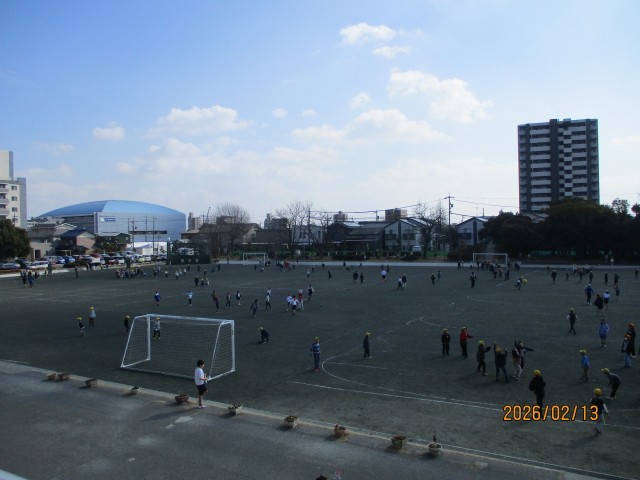 昼放課の運動場の様子です。寒くても元気に遊んでいる子がたくさんいます。寒さに負けずに体を動かして遊びましょう。