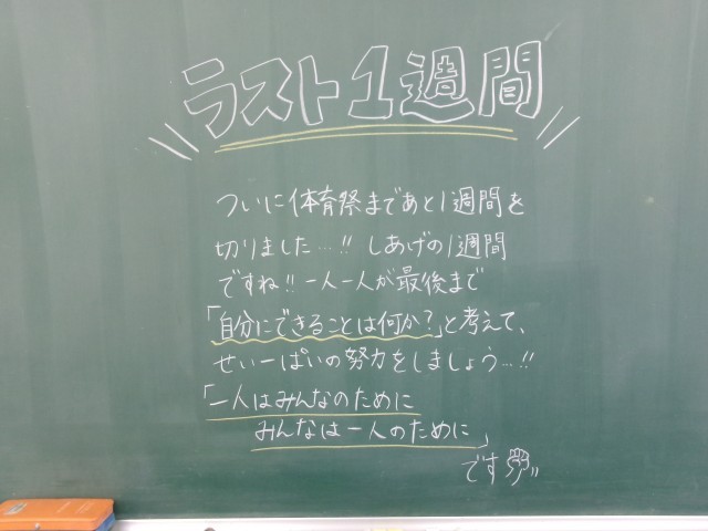 10/27 今朝の黒板「ラスト 1週間!」