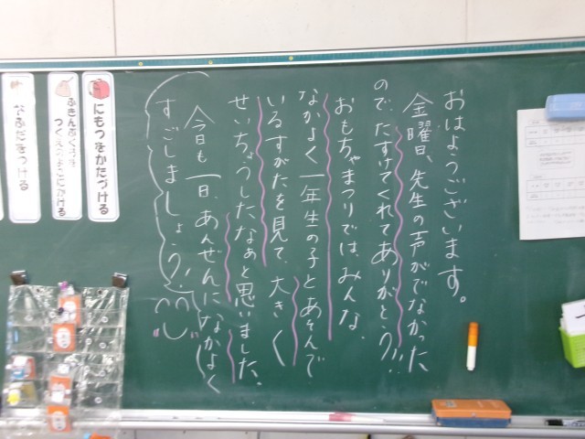 10/23 今朝の黒板「就学時健診!」