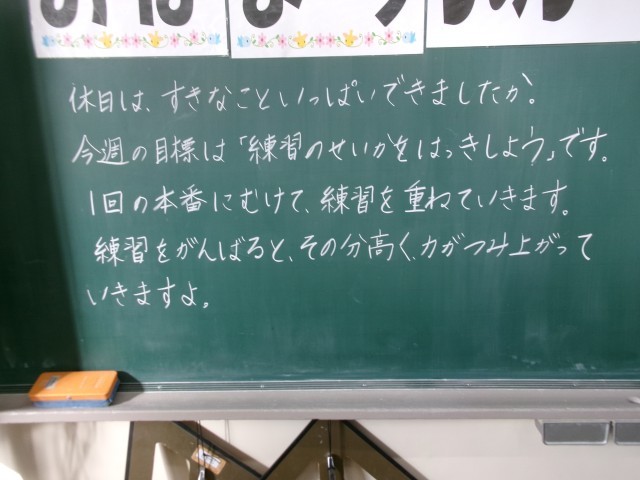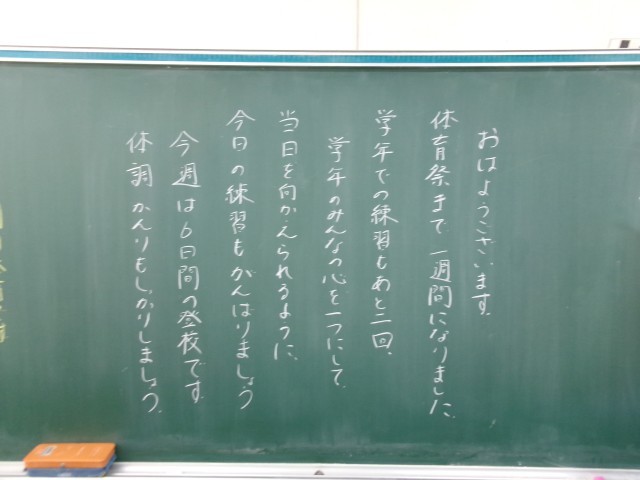10/14 今朝の黒板「体育祭の練習 開始 !」