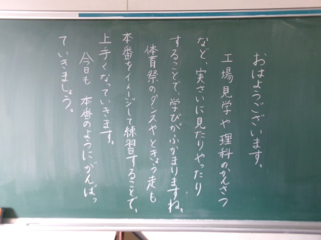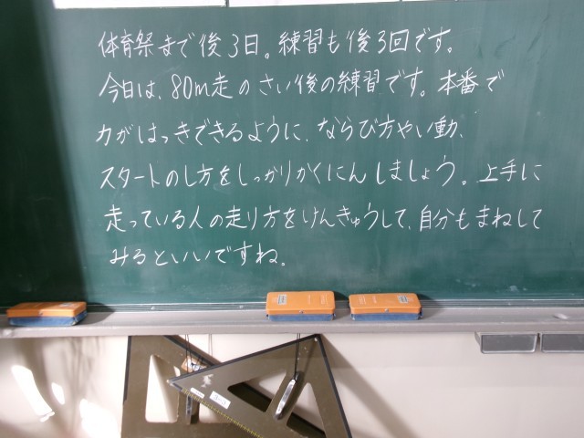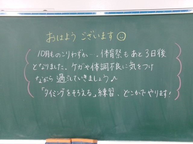 10/14 今朝の黒板「体育祭の練習 開始 !」