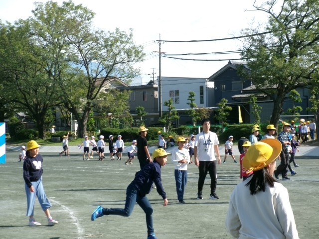 曇り空で、思い切り運動場で遊ぶことができます。多くの子どもと先生が運動場で遊んでいました。子どもたちの様子を見守っている先生方も多くいます。運動場で遊ぶことを楽しみに学校に来ている子もたくさんいます。※3枚目写真の「+」をクリックするとそれ以外の笑顔が見られます。