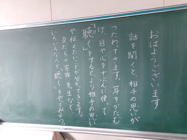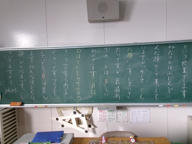 今朝の黒板のメッセージの一部です。「おもてなしの心!」という記載がありました。11日(2限・3限)と12日(2限・3限)には学校公開授業が計画されています。子どもたちは保護者の皆様に「自分が頑張っていること」を見てほしいと思っています。多くの保護者の皆様の来校をお待ちしています。※3枚目写真の「+」をクリックすると、それ以外のコメントも見ることができます。