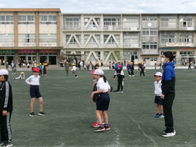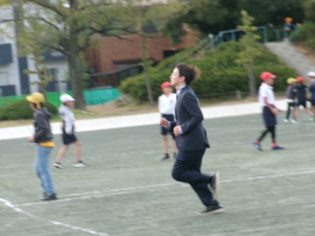 曇り空ですが、多くの子が運動場で走り回っています。また、子どもと一緒に遊んだり、子どもたちの様子を見守ったりしている先生方も多くいます。今日は学校公開で保護者の方も子どもたちと一緒に遊んでいました。※3枚目写真の「+」をクリックするとそれ以外の笑顔が見られます。