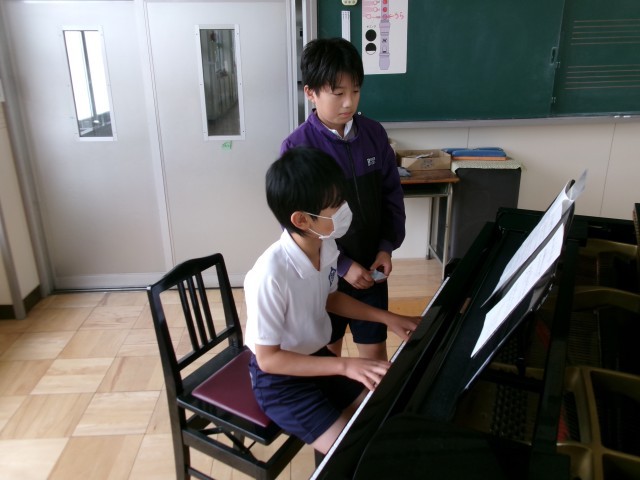 今日の放課、先生と子どものようすです。先生は子どもたちと一緒に遊ぶ時間を大切にしています。教室では、多くの子どもたちが先生とおしゃべりをしていました。また、音楽室でピアノ演奏の自主練習に取り組む子もいました。子どもたちも先生も笑顔でした!※3枚目の写真も「+」をクリックするとその他の写真が見られます。