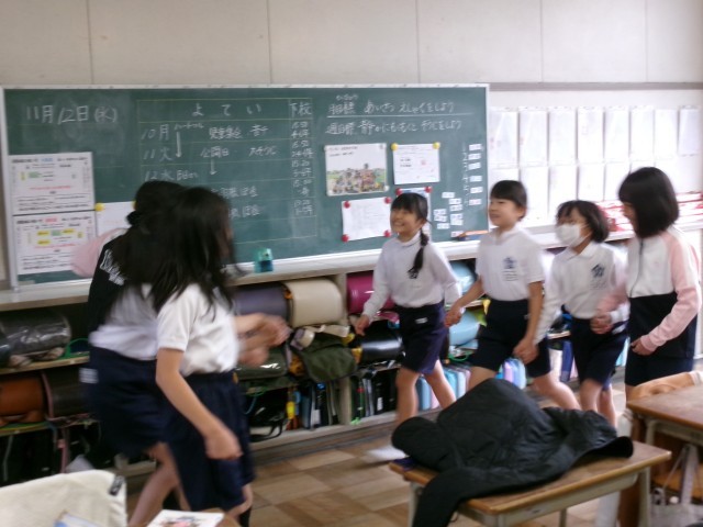 今日の放課、先生と子どものようすです。先生は子どもたちと一緒に遊ぶ時間を大切にしています。教室では、多くの子どもたちが先生とおしゃべりをしていました。また、楽器を演奏してくれる子どもたちもいました。子どもたちも先生も笑顔でした!※3枚目の写真も「+」をクリックするとその他の写真が見られます。