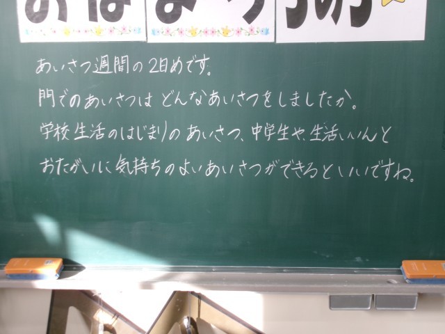 今朝の黒板のメッセージの一部です。今週から始まる「あいさつ運動!」という記載が多くありました。担任が子どもたちに気持ちを伝えることで、学級の絆が強くなります。これからも担任の思いや願いをくみ取れる子どもたちであってほしいです。※3枚目写真の「+」をクリックすると、それ以外のコメントも見ることができます。