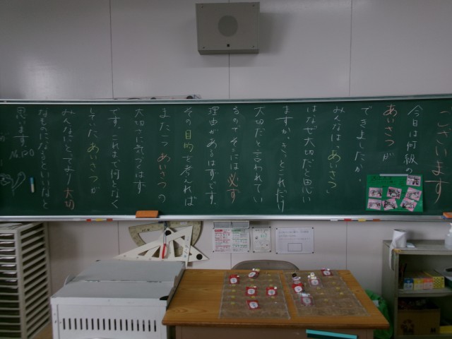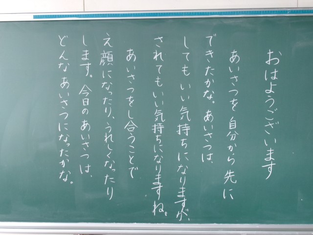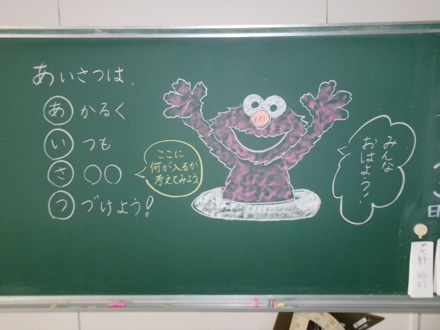 11/25 今朝の黒板「あいさつ運動!」