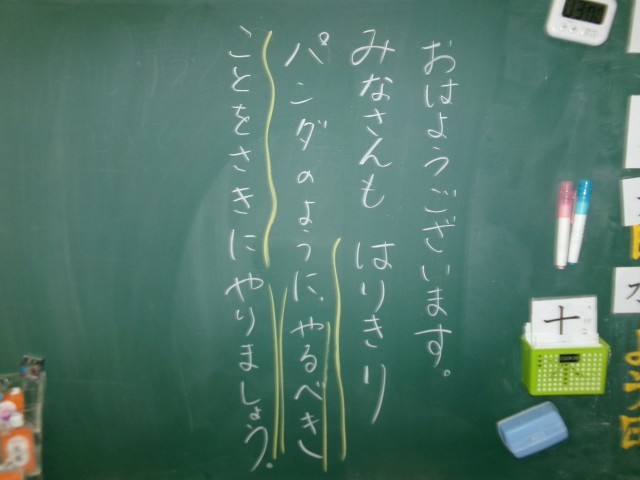 今朝の黒板のメッセージの一部です。「自分事として考える!」という記載がありました。担任が子どもたちに気持ちを伝えることで、学級の絆が強くなります。これからも担任の思いや願いをくみ取れる子どもたちであってほしいです。※3枚目写真の「+」をクリックすると、それ以外のコメントも見ることができます。