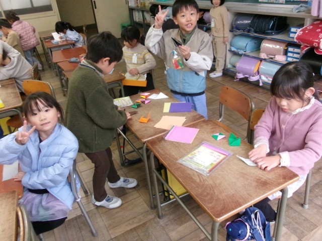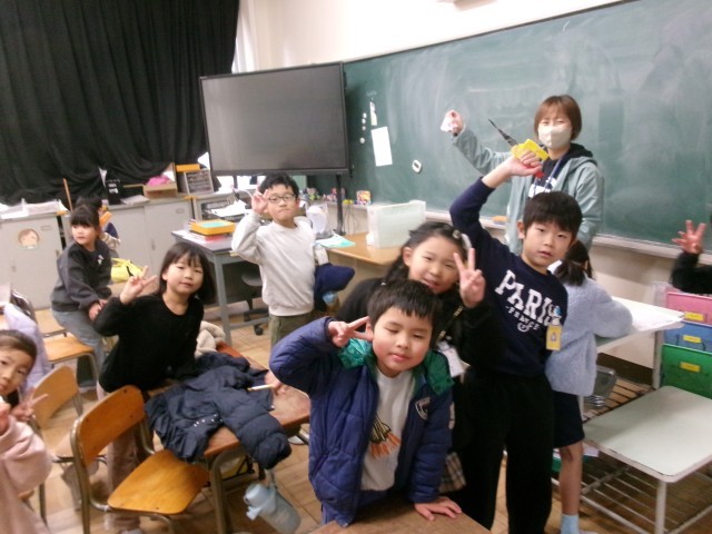今日の放課、先生と子どものようすです。先生は子どもたちと一緒に遊ぶ時間を大切にしています。教室では、多くの子どもたちが先生とおしゃべりをしていました。また、先生と一緒に折り紙をしている子もいました。子どもたちも先生も笑顔でした!※3枚目の写真も「+」をクリックするとその他の写真が見られます。
