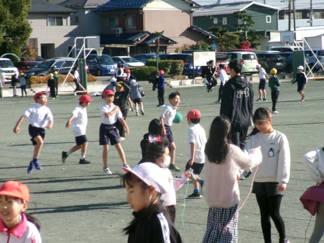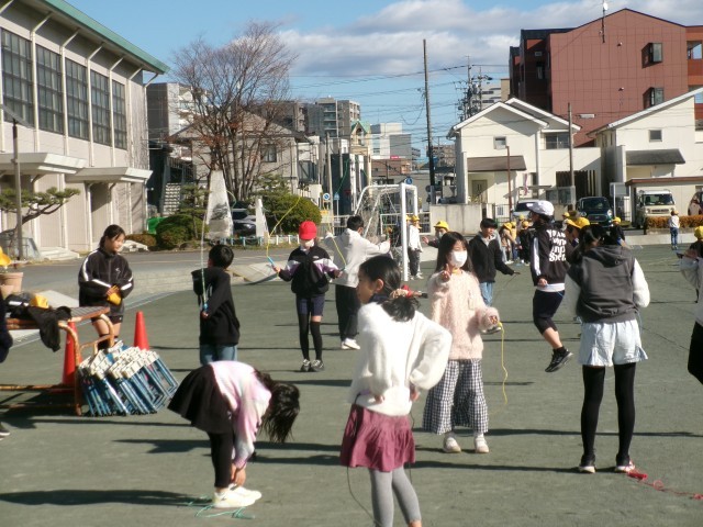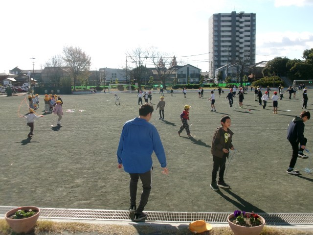 今シーズンで一番冷たい強い風が吹ていますが、多くの子どもたちが運動場でなわとびをしています。また、子どもと一緒になわとびしたり、子どもたちの様子を見守ったりしている先生方も多くいます。運動場で遊ぶことを楽しみに学校に来ている子もたくさんいます。※3枚目写真の「+」をクリックするとそれ以外の笑顔が見られます。