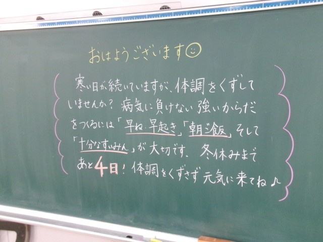 12/11 今朝の黒板「 良い終わりは、良い始まり! 」