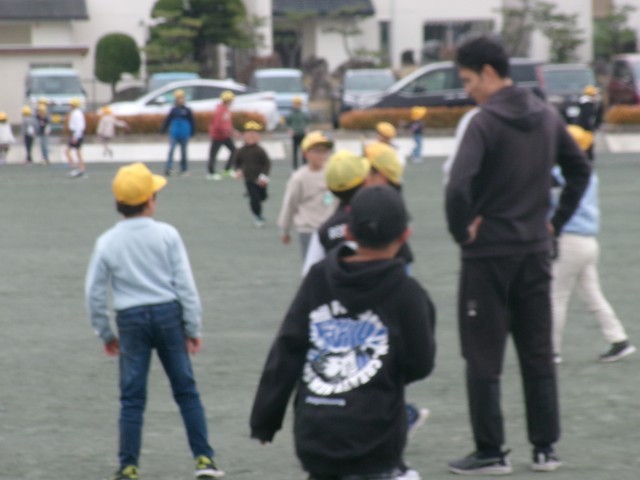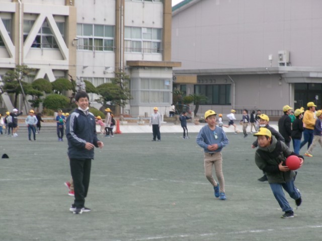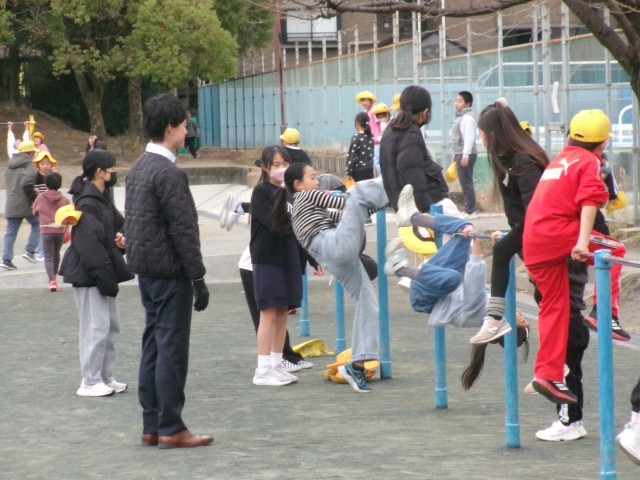 日差しがあって、さほど寒くありません。多くの子が運動場で走り回っています。また、子どもと一緒にバスケットボール、ドッジボール、なわとびなどをしている先生が多くいました。6年生が1年生のなわとびを直している姿もありました。※3枚目写真の「+」をクリックするとそれ以外の笑顔が見られます。