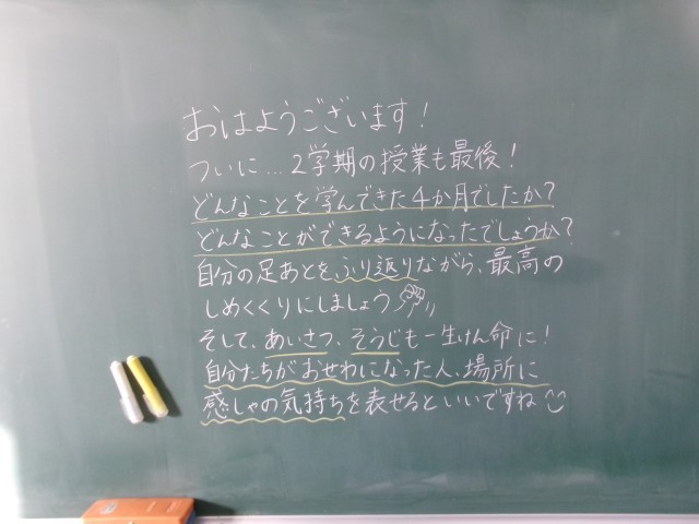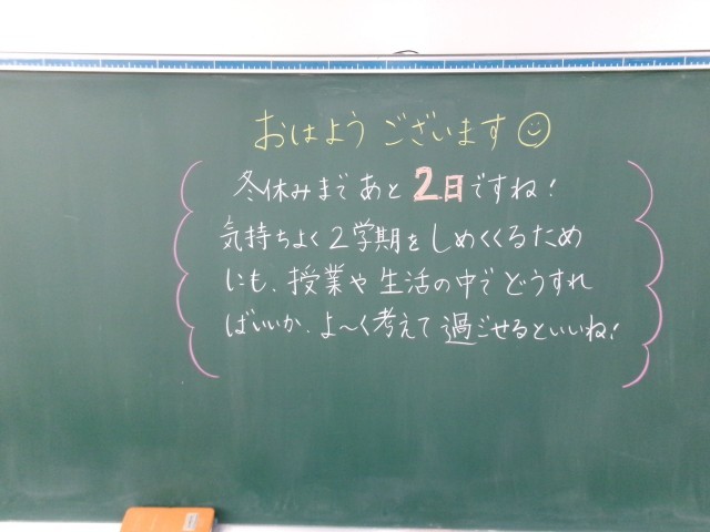 12/11 今朝の黒板「 良い終わりは、良い始まり! 」