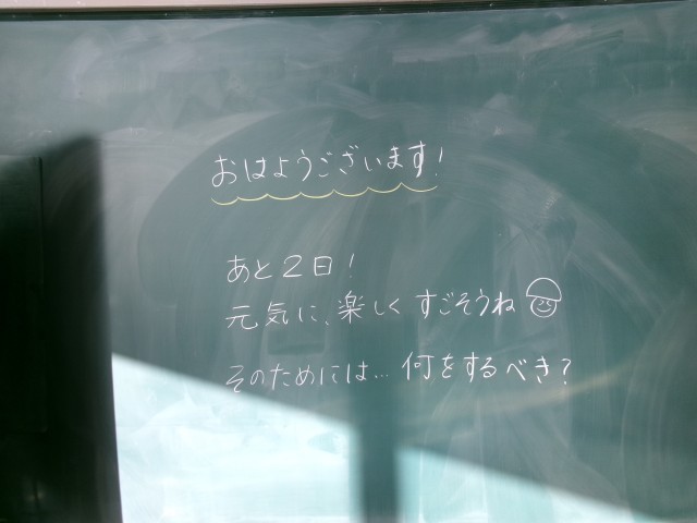今朝の黒板のメッセージの一部です。「お楽しみ会 !」という記載がありました。担任が子どもたちに気持ちを伝えることで、学級の絆が強くなります。これからも担任の思いや願いをくみ取れる子どもたちであってほしいです。※3枚目写真の「+」をクリックすると、それ以外のコメントも見ることができます。