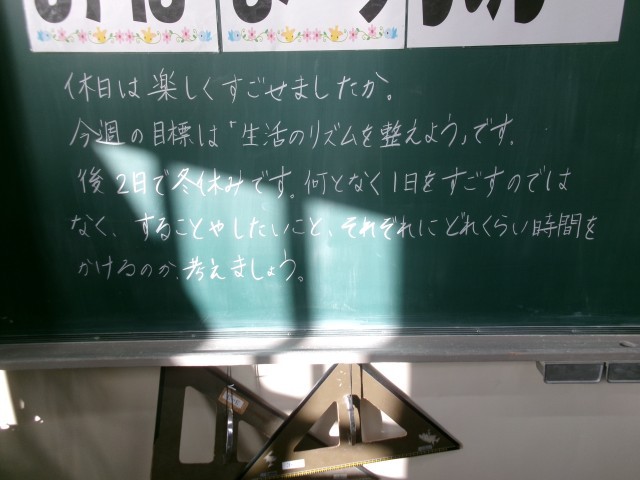 12/10 今朝の黒板「家でのすてきな姿 ! 」