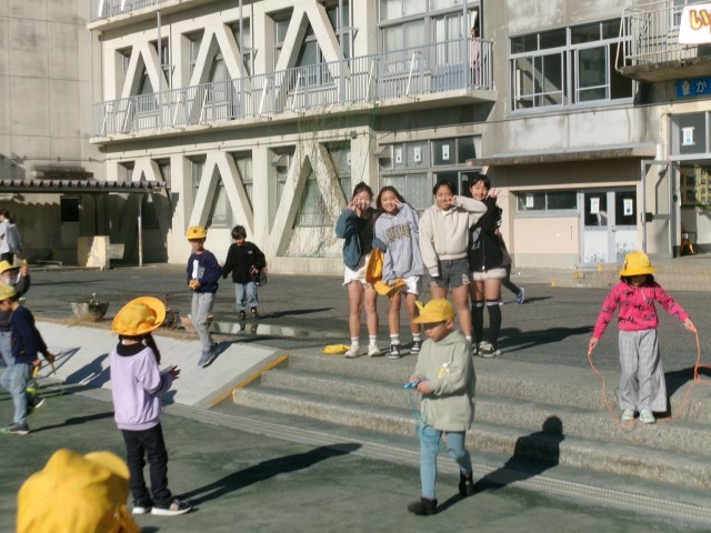 今シーズンで一番冷たい強い風が吹ていますが、多くの子どもたちが運動場でなわとびをしています。また、子どもと一緒になわとびしたり、子どもたちの様子を見守ったりしている先生方も多くいます。運動場で遊ぶことを楽しみに学校に来ている子もたくさんいます。※3枚目写真の「+」をクリックするとそれ以外の笑顔が見られます。