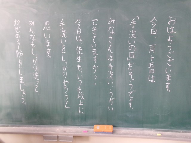 1/15 今朝の黒板「 今日は 手洗いの日 !」