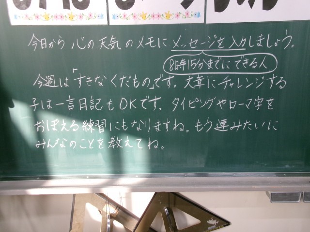 今朝の黒板のメッセージの一部です。「!」という記載がありました。担任が子どもたちに気持ちを伝えることで、学級の絆が強くなります。これからも担任の思いや願いをくみ取れる子どもたちであってほしいです。※3枚目写真の「+」をクリックすると、それ以外のコメントも見ることができます。