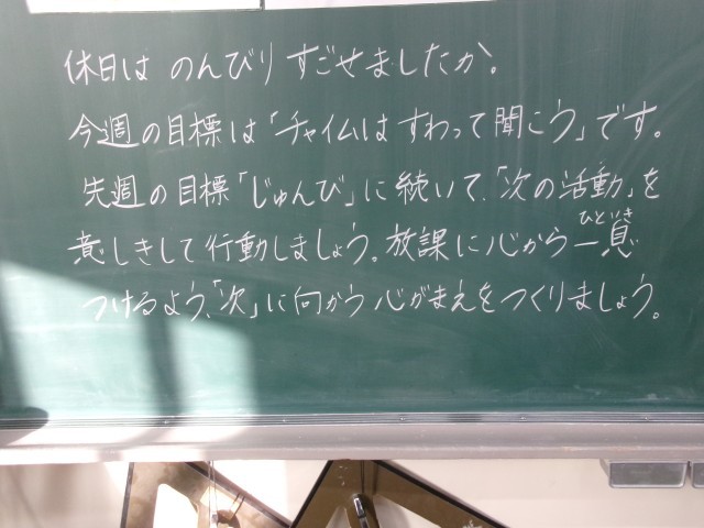 今朝の黒板のメッセージの一部です。「!」という記載がありました。担任が子どもたちに気持ちを伝えることで、学級の絆が強くなります。これからも担任の思いや願いをくみ取れる子どもたちであってほしいです。※3枚目写真の「+」をクリックすると、それ以外のコメントも見ることができます。