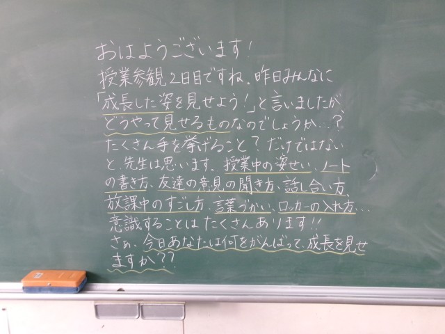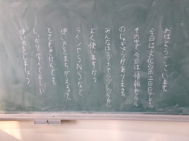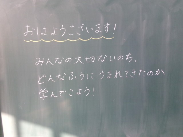 今朝の黒板のメッセージの一部です。「いのちの授業!」という記載がありました。担任が子どもたちに気持ちを伝えることで、学級の絆が強くなります。これからも担任の思いや願いをくみ取れる子どもたちであってほしいです。※3枚目写真の「+」をクリックすると、それ以外のコメントも見ることができます。