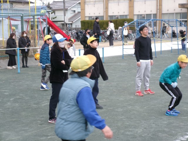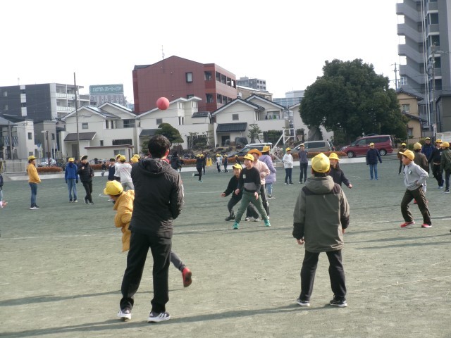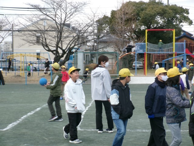 日差しがなく、とても冷たい風が吹いていますが、多くの子が運動場で走り回っています。また、子どもと一緒にドッジボール、なわとびなどをしている先生が多くいました。6年生が小さな子と遊んでいる姿もありました。※3枚目写真の「+」をクリックするとそれ以外の笑顔が見られます。