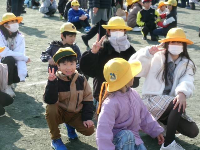 日差しがあり風もなく予報以上に暖かいです。多くの子が運動場で走り回っています。また、子どもと一緒になわとびやドッジボールをしている先生が多くいました。6年生が小さな子と遊んでいる姿もありました。※3枚目写真の「+」をクリックするとそれ以外の笑顔が見られます。