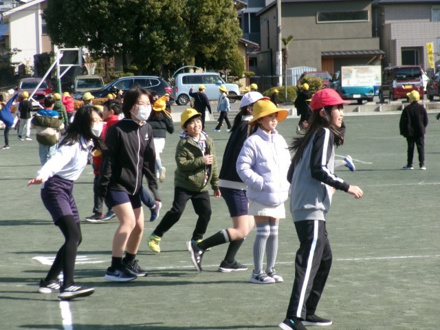 日差しがなく気温も低いですが、多くの子が運動場で走り回っています。また、子どもと一緒になわとびやドッジボールをしている先生が多くいました。6年生が小さな子と遊んでいる姿もありました。※3枚目写真の「+」をクリックするとそれ以外の笑顔が見られます。