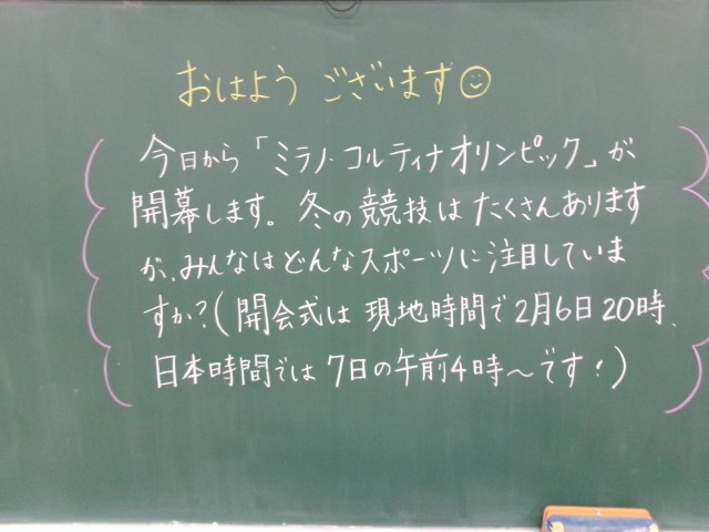 • 2/6 今朝の黒板「ミラノ・コルティナオリンピック!」