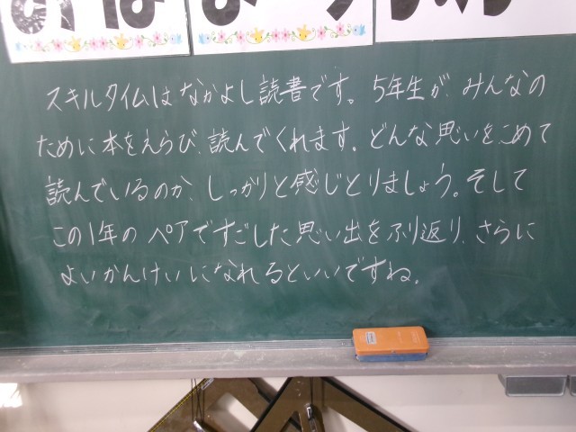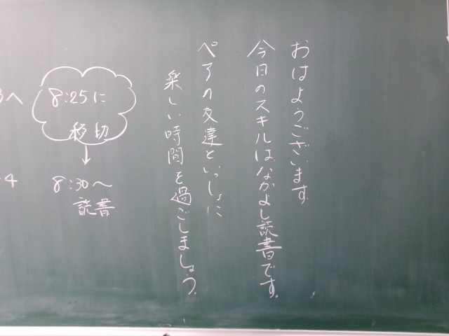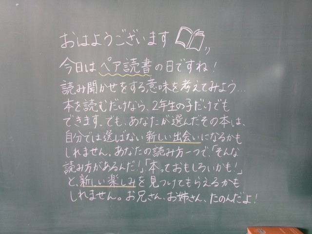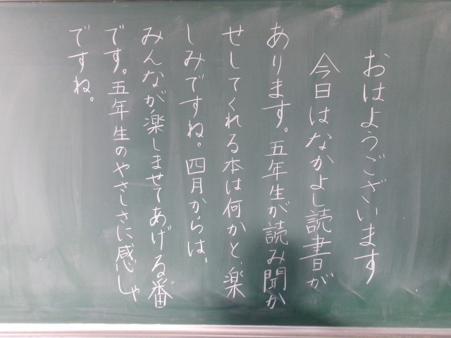 2/10 今朝の黒板「なかよし読書!」