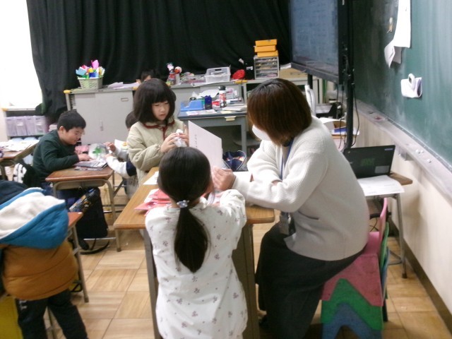 今日の放課、先生と子どものようすです。教室では、子どもたちが先生とおしゃべりをしていました。また、本を読んだり、コマ回しをしている子どもたちを見守っている先生がたくさんいました。子どもたちも先生も笑顔でした!※3枚目の写真も「+」をクリックするとその他の写真が見られます。