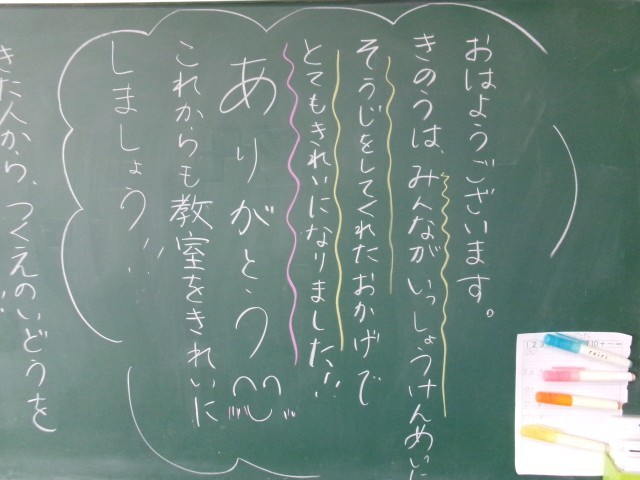 今朝の黒板のメッセージの一部です。「どんな人を応援しくなる?」という記載がありました。担任が子どもたちに気持ちを伝えることで、学級の絆が強くなります。これからも担任の思いや願いをくみ取れる子どもたちであってほしいです。※3枚目写真の「+」をクリックすると、それ以外のコメントも見ることができます。
