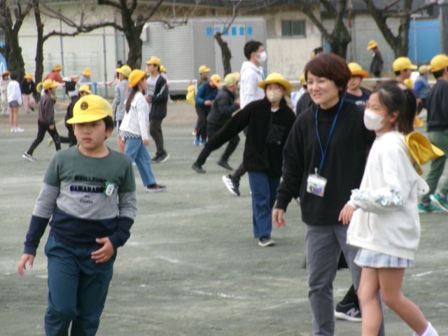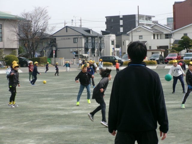 大放課よりもかなり気温が上がり春を感じます。多くの子が運動場で走り回っています。ドッジボールをしている子どもたちを見守っている先生がいました。また、子どもたちと一緒におしゃべりしている先生の姿もありました。※3枚目写真の「+」をクリックするとそれ以外の笑顔が見られます。