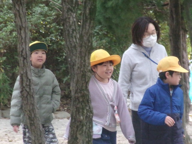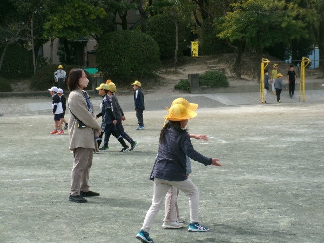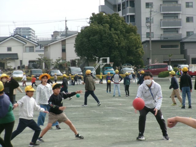 冷たい北風は吹いていますが、多くの子が運動場で走り回っています。また、お兄さんと一緒にドッジボールをしている子どもたちを見守っている先生がいました。また、子どもたちと一緒におしゃべりしている先生の姿もありました。※3枚目写真の「+」をクリックするとそれ以外の笑顔が見られます。