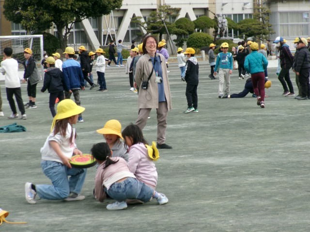 北風が強くとても寒く感じますが、多くの子が運動場で走り回っています。また、お兄さんと一緒にドッジボールをしている子どもたちを見守っている先生がいました。また、スポーツ大会の準備を子どもたちと一緒にしている先生の姿もありました。※3枚目写真の「+」をクリックするとそれ以外の笑顔が見られます。