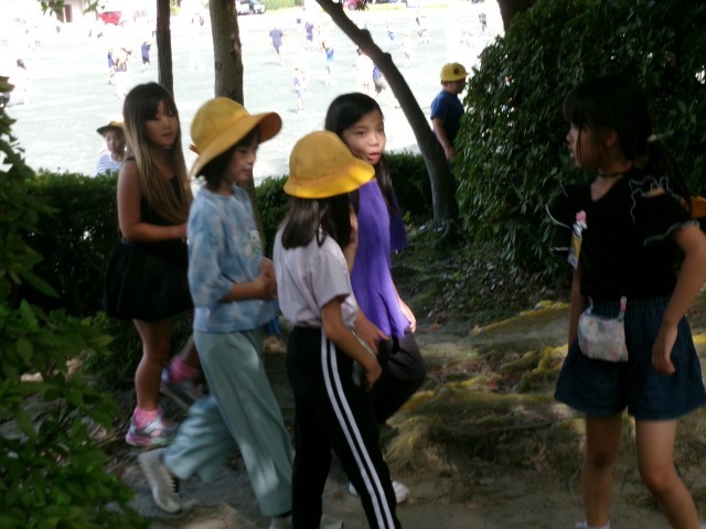 今日の放課「かみやまのもり」のようすです。やまの頂上・記念碑の前にも多くの子どもたちが集まっていました。生活委員(赤いベスト着用)が「走らないよ~」とやさしく声をかける姿がありました。もりの中はさわやかな風が吹き抜け、リフレッシュできます。!※3枚目写真の「+」をクリックするとその他の笑顔が見られます。