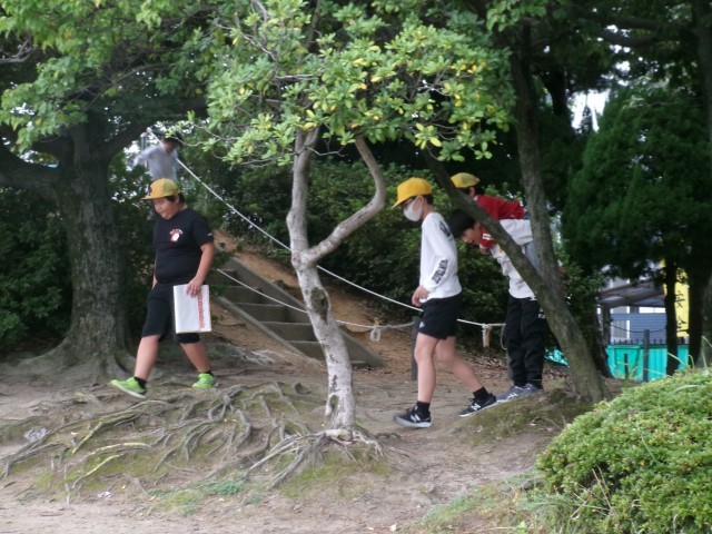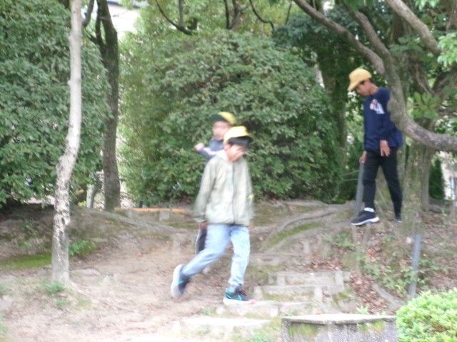 神山の森では低学年の子たちがどんぐりを集めていました。