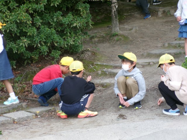 今日の放課「かみやまのもり」のようすです。やまの頂上・記念碑の前にも多くの子どもたちが集まっていました。ドングリがたくさん落ちているので、集めたどんぐりを見せてくれる子がいました。もりの中は少し冷たい風が吹き抜けますが、リフレッシュできます。!※3枚目写真の「+」をクリックするとその他の笑顔が見られます。