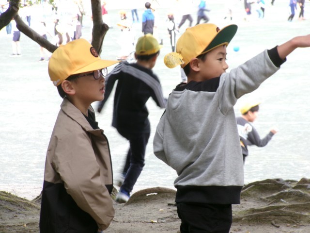 今日の放課「かみやまのもり」のようすです。やまの頂上・記念碑の前にも多くの子どもたちが集まっていました。ドングリがたくさん落ちているので、集めたどんぐりを見せてくれる子がいました。もりの中は少し冷たい風が吹き抜けますが、リフレッシュできます。!※3枚目写真の「+」をクリックするとその他の笑顔が見られます。