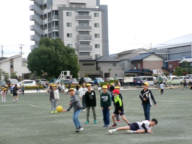 放課になると、ドッジボールで遊ぶ子がたくさんいます。今日もいろいろなところでドッジボールが繰り広げられています。