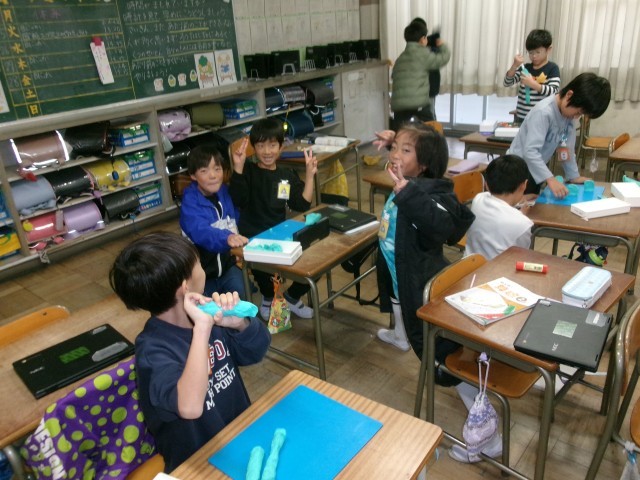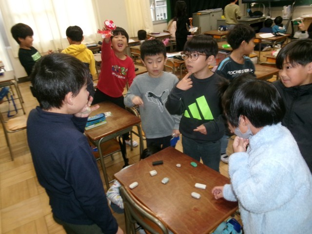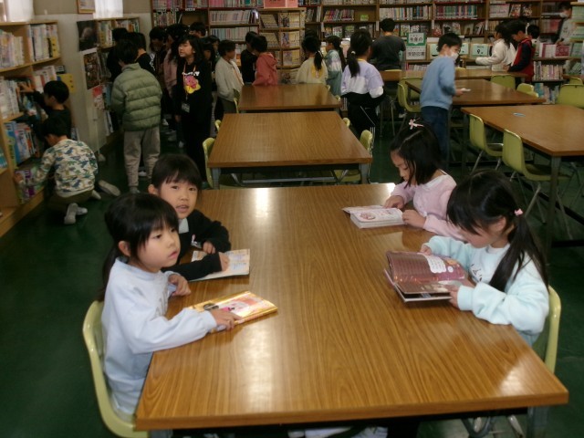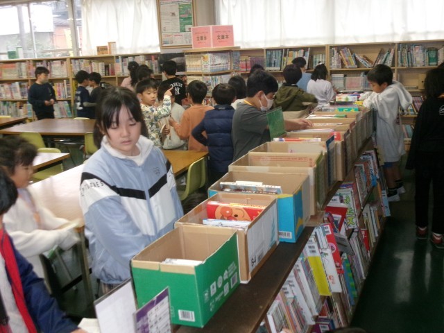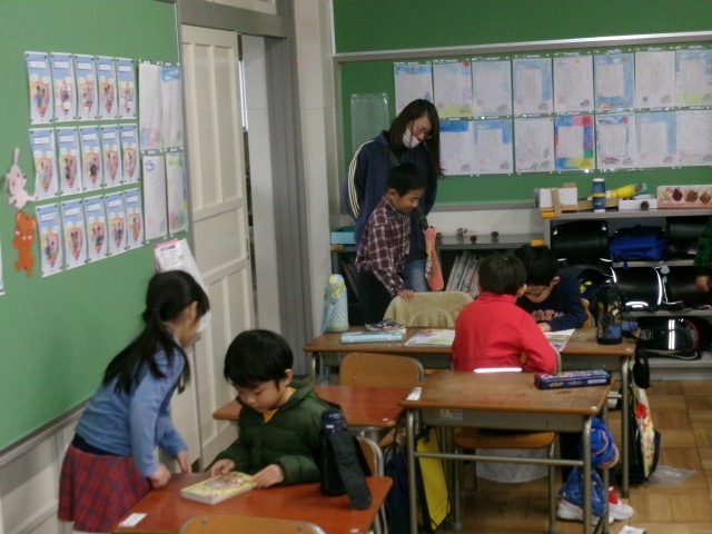 朝から雨のため、子どもたちは教室の中で楽しそうに過ごしています。友だちが集まればいろんな遊びが始まります。室内でも安全に気を付けて、仲良く楽しく過ごしてほしいと思います。1年生が友だちと仲良くコマ回したり、先生と一緒に「トムとジェリー」を観ている学級もありました。図書館も多くの子どもたちが読みたい本を探していました。※3枚目の写真も「+」をクリックするとそれ以外の写真が見られます。