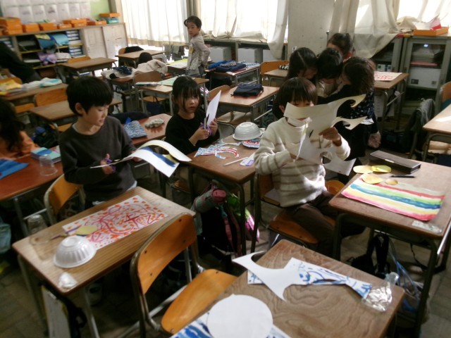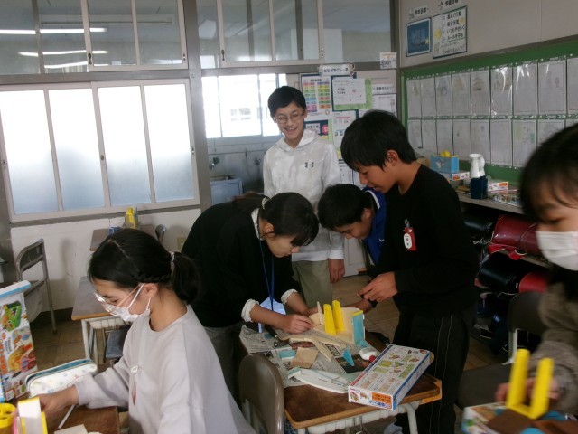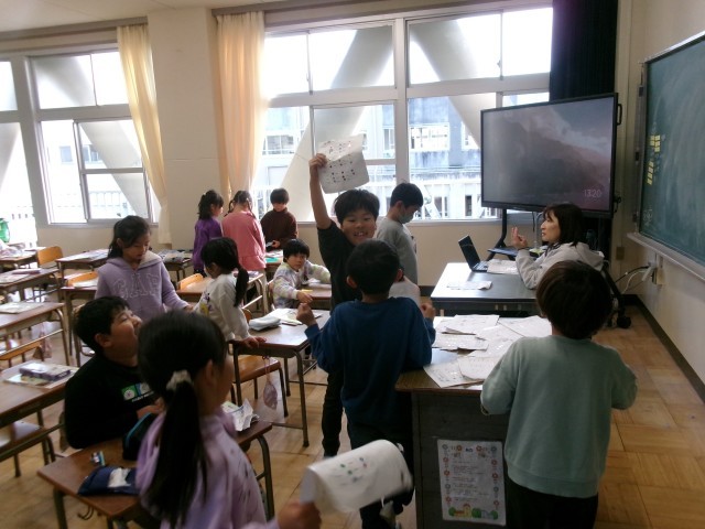 朝から雨のため、子どもたちは教室の中で楽しそうに過ごしています。友だちが集まればいろんな遊びが始まります。室内でも安全に気を付けて、仲良く楽しく過ごしてほしいと思います。1年生が友だちと仲良くコマ回したり、先生と一緒に「トムとジェリー」を観ている学級もありました。図書館も多くの子どもたちが読みたい本を探していました。※3枚目の写真も「+」をクリックするとそれ以外の写真が見られます。