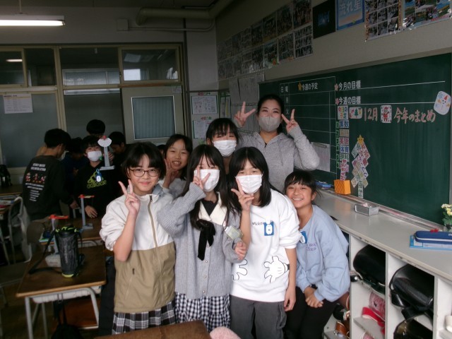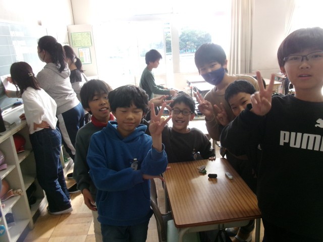 今日の放課 室内のようすです。室内でも、子どもたちは図書館で本を読んだり、友だち同士でクロムブックでゲームをしたり、先生のお手伝いをしたりして仲良く過ごしています。「何をして遊んでいるの?」と声をかけると、多くの子かどもたちから笑顔が返ってきます。※3枚目の写真の「+」をクリックするとそれ以外の笑顔が見られます。