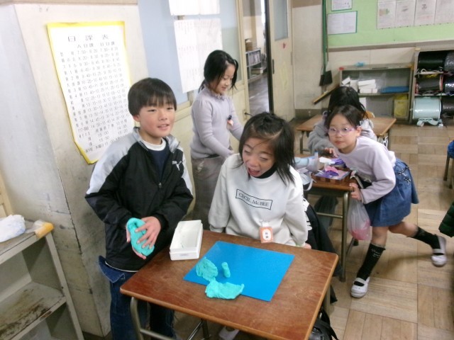 突然のため、子どもたちは教室の中で楽しそうに過ごしています。友だちが集まればいろんな遊びが始まります。室内でも安全に気を付けて、仲良く楽しく過ごしてほしいと思います。1年生が友だちと仲良くコマ回したり、先生と一緒に「トムとジェリー」を観ている学級もありました。※3枚目の写真も「+」をクリックするとそれ以外の写真が見られます。