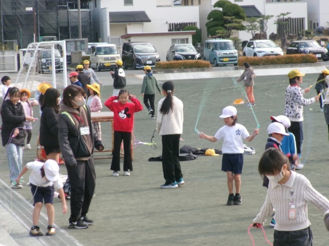 今日の放課、先生と子どものようすです。先生は子どもたちと一緒に遊ぶ時間を大切にしています。運動場では、多くの子どもたちが先生となわとびをしていました。また、ペア学年のお姉さんにお遊んでもらっている小さな子もいました。子どもたちも先生も笑顔でした!※3枚目の写真も「+」をクリックするとその他の写真が見られます。