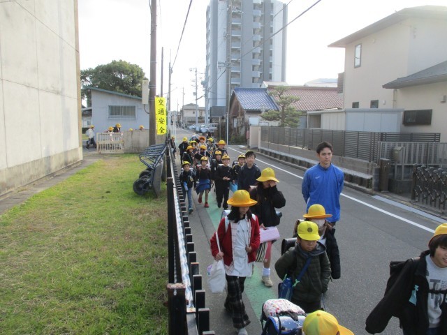 集団での歩き方はもちろん、通学路内の危険場所や緊急時の避難場所についても確認しました。